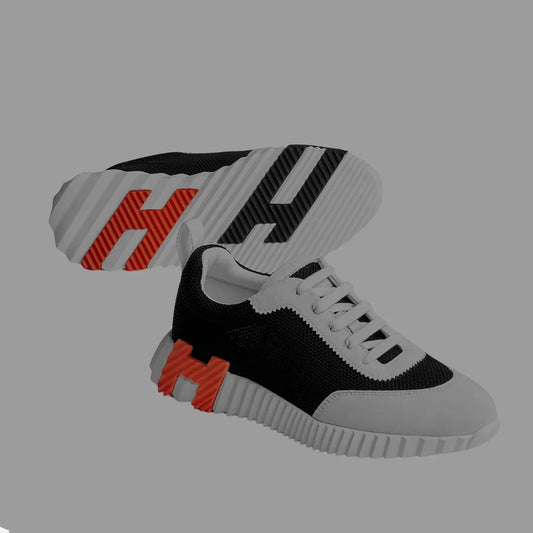 Hermes White/Black/orange Mesh and Suede Bouncing